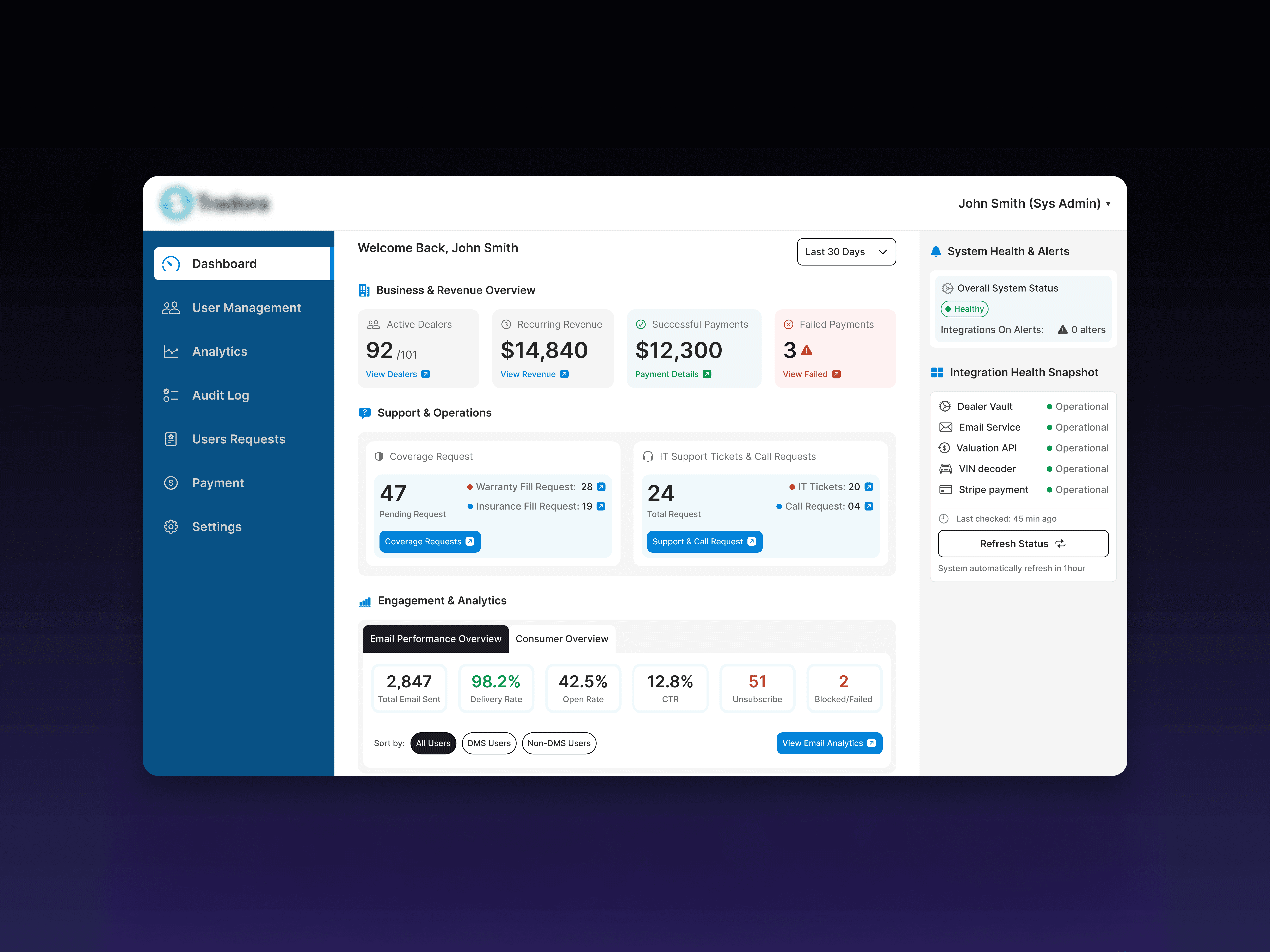The project focused on creating a scalable and intuitive dealer platform that simplifies service scheduling, inventory visibility, and operational workflows while improving transparency and convenience for customers.