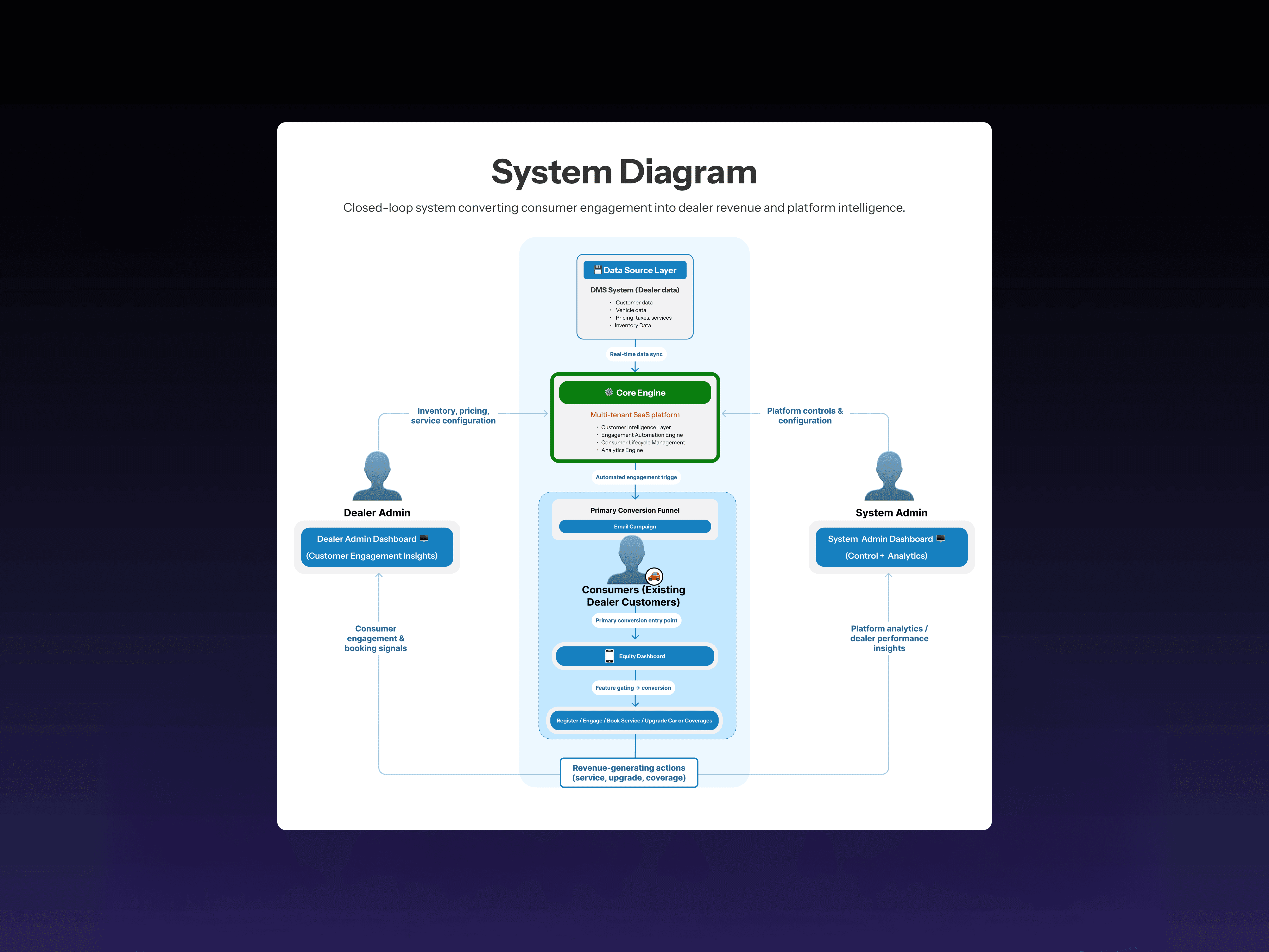 Designed a SaaS platform that helps car dealers increase repeat customer engagement by automating post-purchase communication using DMS-integrated data.